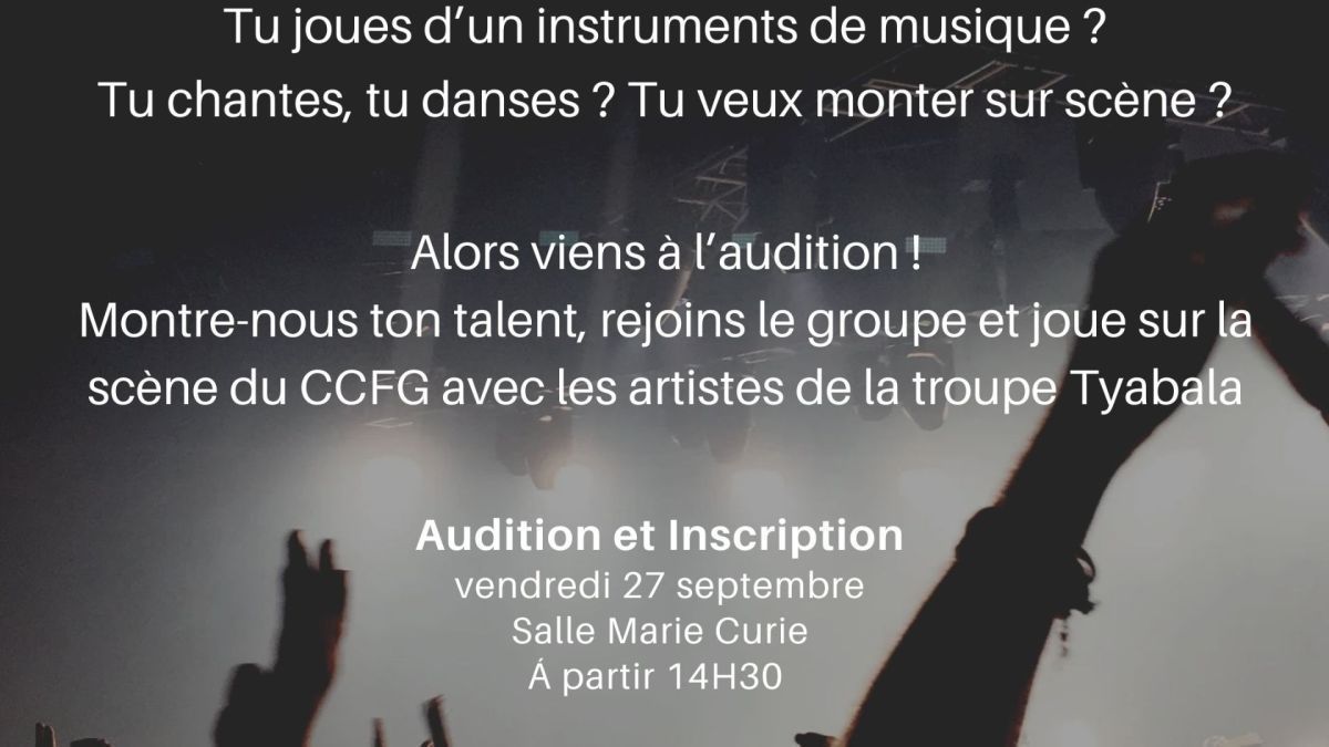 Cette audition aura lieu en salle Marie Curie le vendredi 27 septembre prochaine entre 14h30 à 17h30.