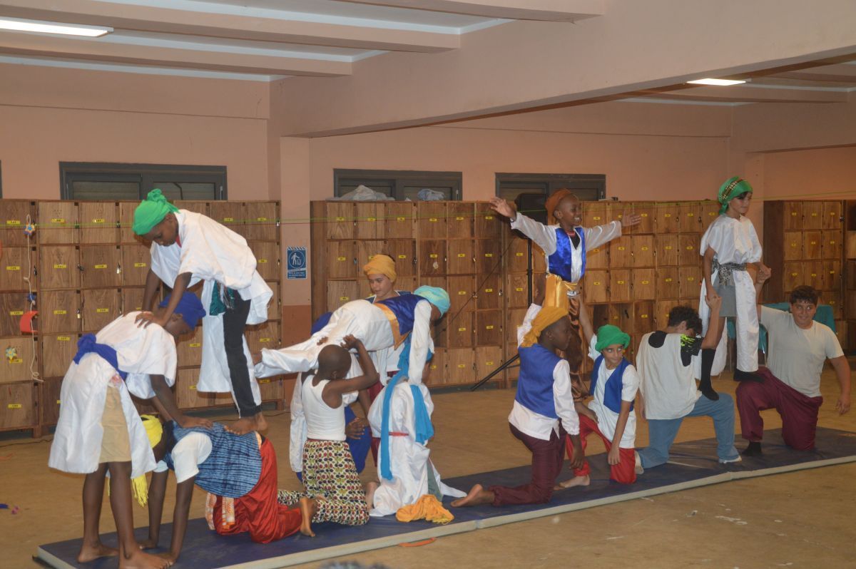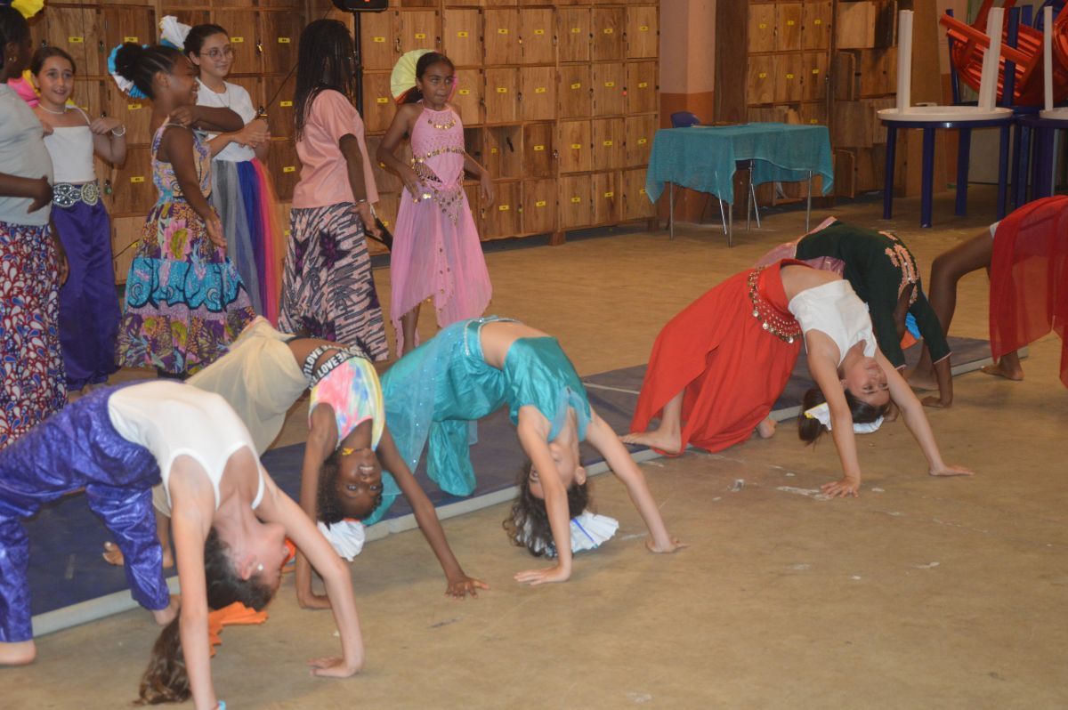 Cette mise en scène permet tout aussi de valoriser les compétences acquises en EPS (acrobaties et cirque) et en musique (body clap et danses orientales).